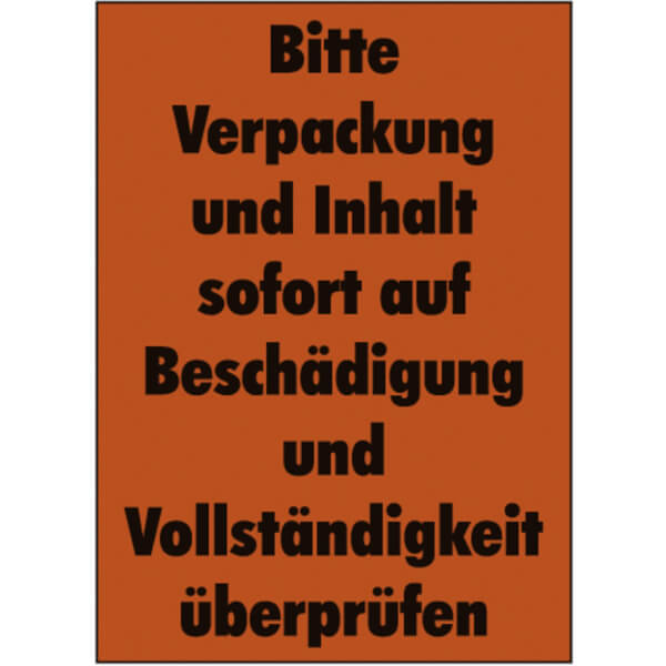 SafetyMarking® Verpackungsetikett Bitte Verpackung und Inhalt sofort auf Beschädigung und Vollständigkeit überprüfen