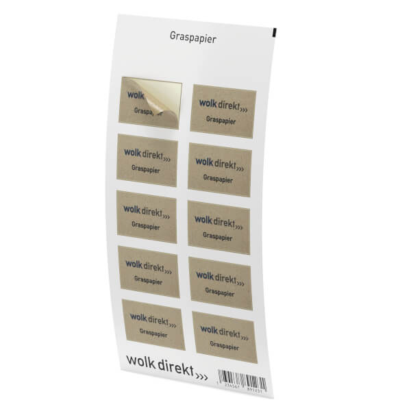 Neues Material aber gewohnte Qualität! Graspapier ist umweltfreundlicher als herkömmliche Folien, da die Herstellung im Vergleich deutlich ressourcenschonender ist. Neben dem Anteil an recyceltem Material besteht Graspapier zu ca. einem Drittel aus getrockneten Grasfasern. Kennzeichnen Sie daher ihre Verpackungen mit Etiketten aus Graspapier und setzen auf Nachhaltigkeit.