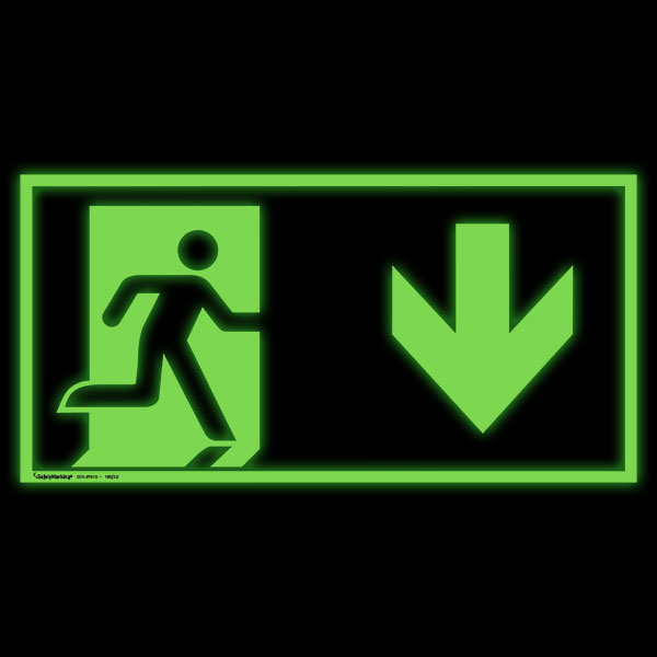 Notausgang rechts, abwärts (Kombischild)