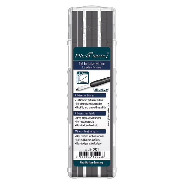 Der Pica BIG DRY ist mit einem automatischem Minenvorschub per Knopfdruck ausgestattet und bietet optimalen Schutz gegen Staub und Nässe.