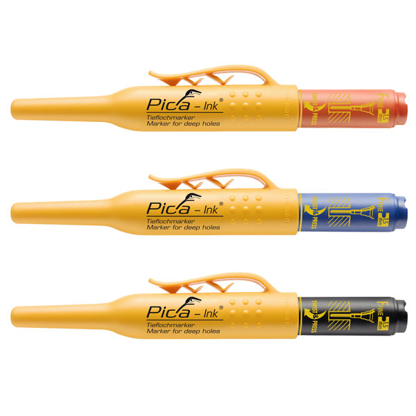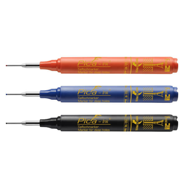 Der Pica INK Tieflochmarker ist ein Spezialmarker für schwer zu erreichende Stellen. Er schreibt und markiert auf allen trockenen Oberflächen und Materialien.