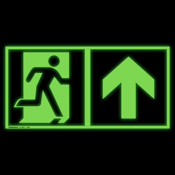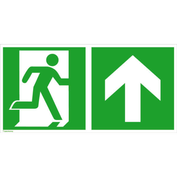 Notausgang rechts mit Zusatzzeichen - Richtungsangabe aufwärts bzw. geradeaus