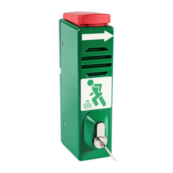 Rettungswege müssen ungehindert begehbar sein. Die ideale Lösung sind Türwächter. Sie verhindern die unbefugte Nutzung von Notausgängen. In Türwächter-Verschlussstellung kann die Türklinke nicht gedrückt werden. Schwenken des Türwächters um 45° gibt die Türklinke frei und löst einen Alarmton (ca. 95 dB) aus, der auf Gefahr oder Missbrauch aufmerksam macht. Aufheben des Alarms nur mit Schlüssel möglich! Berechtigte Personen können über die Schlüsselöffnung den Alarm umgehen.