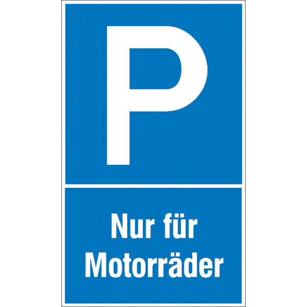 Parkplatzschild - Symbol: P, Text: Nur für Motorräder