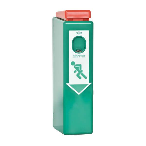 Der patentierte GfS EH-Türwächter sichert den Notausgang und ermöglicht dessen Öffnung mit nur einem einzigen Handgriff. Durch das Herunterdrücken der Klinke, bewegt sich der Türwächter nach unten und es ertönt ein Signal Ton, dieser kann erst durch Hilfe des passenden Schlüssels beseitigt werden. Der Türwächter lässt sich auch erst dann wieder nach oben verschieben. Für anhaltenden Durchgangsbetrieb ist die Dauerfreigabe des Systems über den Geräteschlüssel möglich. Die Einzelbegehung der Tür kann ohne Alarmauslösung ebenfalls mit dem Schlüssel über die Wechselfunktion des Türschlosses vorgenommen werden.